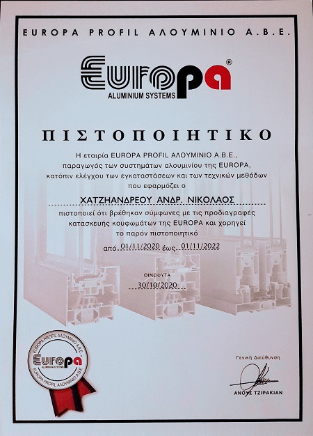 Αποκλειστικός Πιστοποιημένος Κατασκευαστής EUROPA.