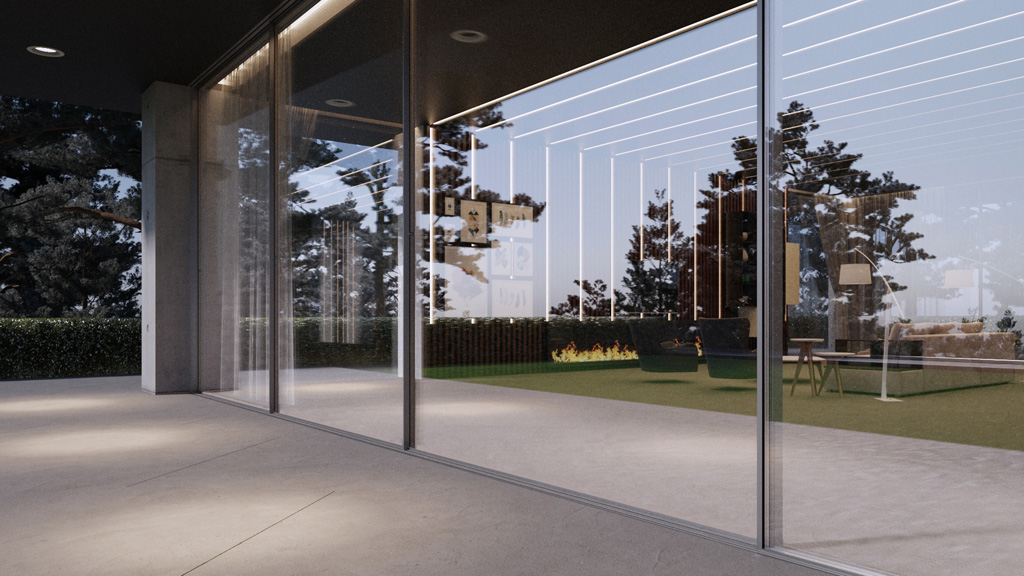 - Δυνατότητα εντοιχισμού των προφίλ του κουφώματος στην τοιχοποιία, για μέγιστη διαφάνεια και διαπερατότητα του φωτός