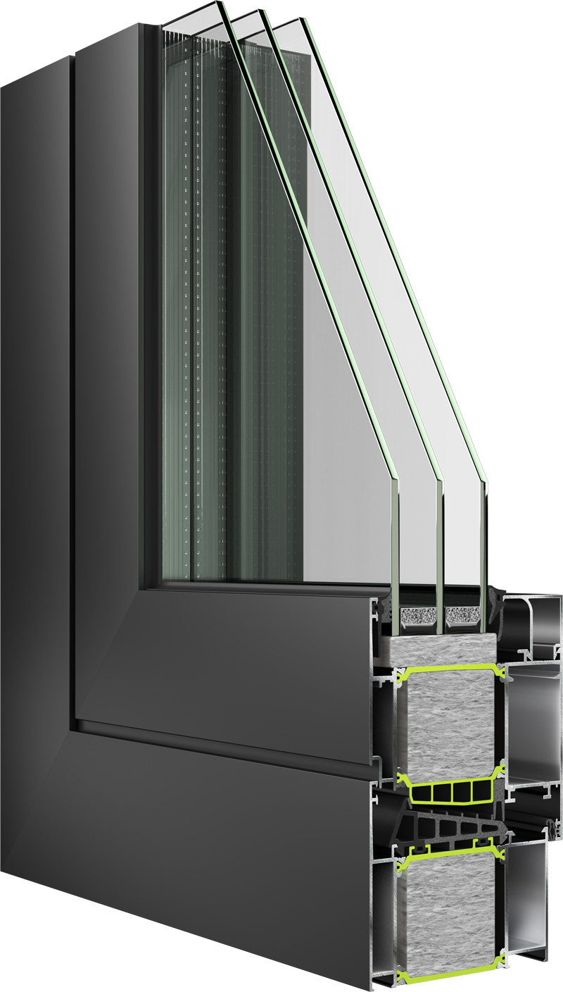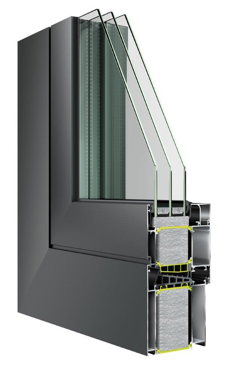 - Almost excellent level of thermal insulation with: the use of 54mm polyamids option of double or triple glazing up to 80mm insulation materials inside the profiles extra insulation around the glass pane. full recyclable double-extrusion rubber (EPDM-Expanded EPDM) for maximum thermal insulation.
